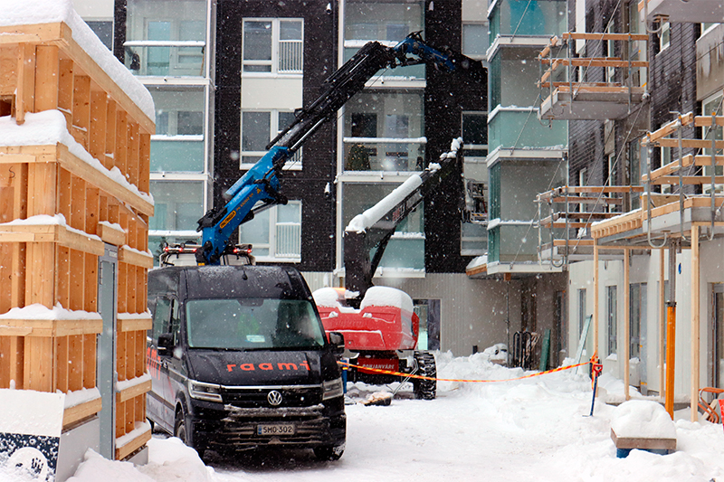 ”Asiakashyöty on se, että pystymme optimoimaan toimituksen niin, että yksiköt saadaan kuljetettua asennuskohteen viereen ilman erikoisjärjestelyä. Näin asennustyö käy aina karmien kiinnityksestä lasitukseen ja listoitukseen sujuvasti”, Pekka Lyytinen selvittää.