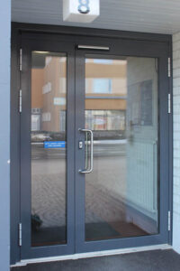 Taloyhtiö sai oviremontilla esteettömän porrashuoneen oven, jossa on automaattiavaaja, eristävät lämpölasit, ergonomiset helat ja kestävät hienot värit.